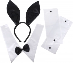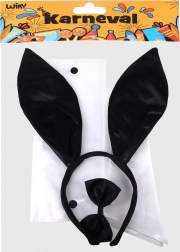 Schattige carnavalsset Konijn voor kinderen bevat alles wat je kind nodig heeft voor een verkleedbal of schoolvoorstelling. De set omvat een haarband met oren, een strik met kraag en polsmanchetten. Ideaal voor kinderen vanaf 5 jaar.