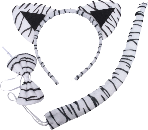Zoek je een eenvoudig en effectief kostuum voor kinderen? Deze witte-tijgerset is een perfecte keuze. Met de comfortabele haarband met oortjes, de lichte staart en de stijlvolle vlinderdas maak je in een mum van tijd een schattig dierenkostuum. Geweldig voor carnaval, feestjes en thematische fotoshoots.