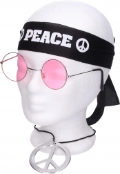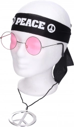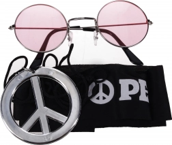 Creëer een authentieke retro look met deze stijlvolle hippie carnavalsset. De set bevat alles voor de relaxte jaren 60 en 70: gekleurde bril, sjaal en hanger – ideaal voor carnaval, themafeesten en festivals.