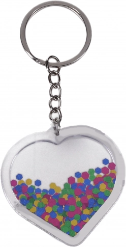 Glitterende acryl sleutelhanger in hartvorm. Licht, duurzaam en ideaal voor sleutels of tas. Stijlvolle accessoire en lief cadeautje.