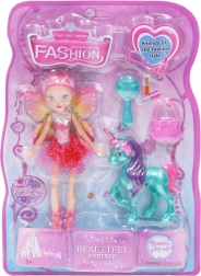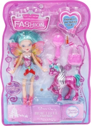 De betoverende fee-pop met eenhoorn maakt elk kind blij dat van sprookjes en de magische wereld van fantasie houdt. De set bevat een pop van 21 cm hoog, een schattige eenhoorn en accessoires – een kam en een handtas. De eenhoorn is verkrijgbaar in 3 kleurvarianten: paars, groen en roze.