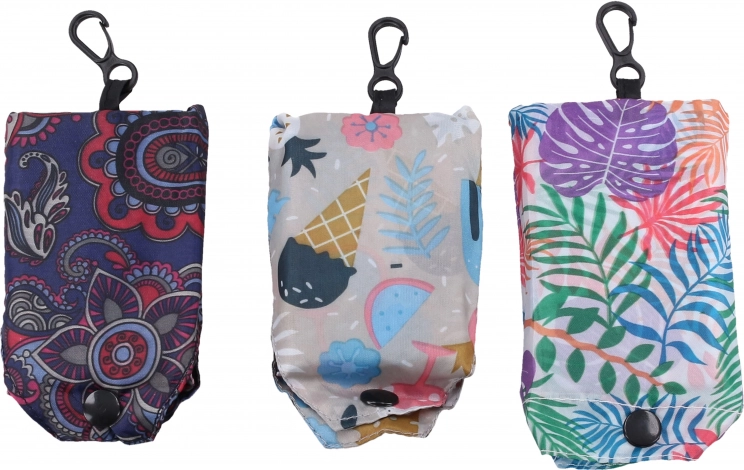 Opvouwbare stoffen tas met een praktische karabijnhaak is de ideale winkelpartner die je eenvoudig in je handtas bewaart. Dankzij het compacte ontwerp en het lichte gewicht ben je altijd klaar voor onverwachte aankopen.