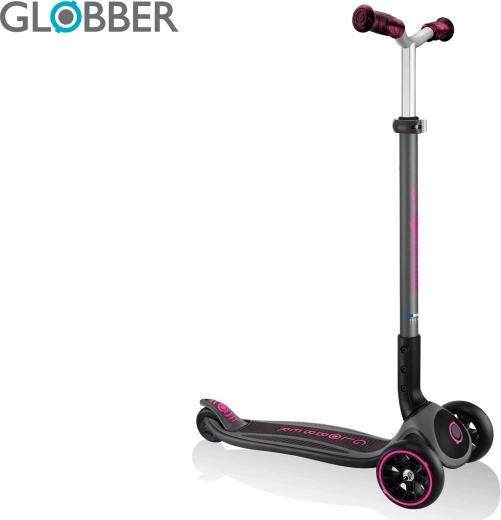De stijlvolle kinder driewielstep Globber Master Prime in de combinatie black / neon pink biedt een stabiel driewielontwerp, verstelbaar stuur en een gepatenteerd stuurslot voor een veilige en soepele rit. Dankzij het lage deck, het antislip oppervlak en een draagvermogen van 50 kg is hij ideaal voor groeiende rijders en comfortabel sturen door te leunen.