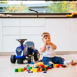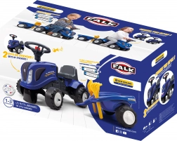 De blauwe looptractor NEW HOLLAND van het merk Falk is een geweldige keuze voor de eerste ritjes van kleine boeren. Hij biedt een afneembare aanhanger, een stuur met claxon, een stabiele constructie en wielen van hoogwaardige kunststof. Inclusief zandspeelgoed – schep en hark en zelfs twee stickersets, waaronder een vrolijke “lachende” variant voor personalisatie.