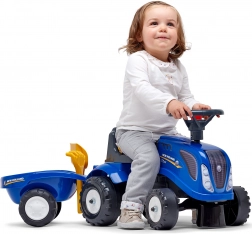 De kleine NEW HOLLAND tractor voor kinderen vanaf 12 maanden prikkelt zowel de fantasie als de beweging. Dankzij de lichte en duurzame kunststof constructie is hij gemakkelijk te bedienen en veilig en stabiel voor de eerste rijervaringen. De afneembare aanhanger maakt het mogelijk om speelgoed, blokken en schatten uit de tuin te vervoeren.