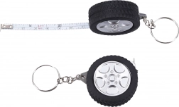 Praktische sleutelhanger in de vorm van een wiel met een geïntegreerd meetlint van 1 meter – de perfecte accessoire voor iedereen die altijd een meetlint bij de hand wil hebben.