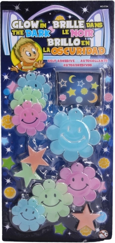 Maak de kinderkamer gezelliger met vrolijke decoraties die in het donker oplichten. Deze set bevat lichtgevende vormen in 4 varianten, die overdag opladen met licht en na het uitdoen van het licht zacht nachtlampje bieden voor rustiger inslapen.