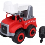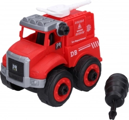 Bouw je eigen interventievoertuig! Deze schroefbare brandweerauto stimuleert de fijne motoriek, het logisch denken en de geduldigheid. Het kind zet de auto zelf in elkaar met de meegeleverde schroevendraaier en kan daarna meteen op pad dankzij de vrij draaiende wielen.