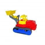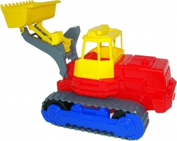 Deze kunststof rupslader is ideaal voor spel in de zandbak en thuis. Dankzij de stabiele rupsbanden kan hij over oneffen terrein rijden en de grote schep maakt het opscheppen van zand of blokken eenvoudig. Het speelgoed is ontworpen met het oog op de veiligheid van de allerkleinsten en kan intensief gebruik aan.