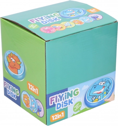 Werpschijf met dinosaurusthema, diameter 16 cm, zacht schuimmateriaal, 6 kleuren. Ideaal voor buitenspellen.