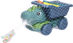 De leuke kiepwagen voor in het zand DINO van 27 cm biedt kinderen urenlang creatieve speelpret in de zandbak. De set bevat een zeef, 2 schepjes en 2 vormpjes. De vrachtwagen heeft vrijlopende wielen en een kantelbare laadbak voor gemakkelijk vervoeren en uitkiepen van zand.
