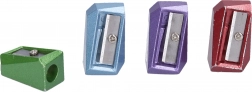 Compacte en duurzame metalen puntenslijper voor één potlood in een kleurenmix. Ideaal voor dagelijks gebruik op school en op kantoor. Praktische verpakking van 48 stuks in een koker, geschikt voor klaslokalen, kantoren en thuis.