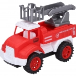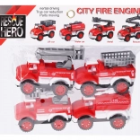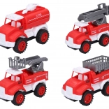 Deze set bevat vier rode brandweerauto’s van 10,5 cm, elk vertegenwoordigt een ander type brandweervoertuig: