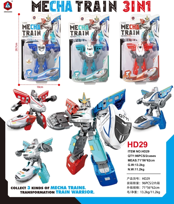 Ontdek de Robot Trein 2v1, die de vreugde van spelen met treinen combineert met de opwinding van robots. Dit geweldige speelgoed is verkrijgbaar in drie kleuren: lichtblauw, donkerblauw en rood.