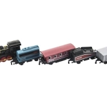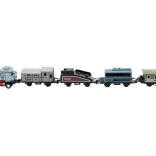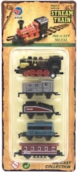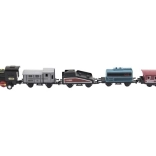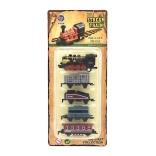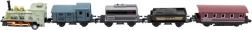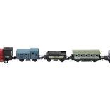 Deze treinset met een locomotief en vier wagons zal elke spoorliefhebber verheugen. Dankzij de combinatie van metalen en kunststof uitvoering ogen de modellen realistisch en kunnen ze tegen enthousiast kinderspel. Elk onderdeel heeft een compacte lengte van 8 cm, waardoor het gemakkelijk in de hand past en op een thuisbaan.