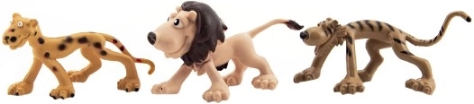 Set van 6 dieren in een praktische verpakking – ideaal voor onderweg, op de opvang of thuis. Leeuw, cheeta en hyena ontbreken niet.