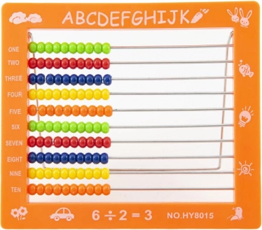 Rijen gekleurde kralen vereenvoudigen optellen en aftrekken en ondersteunen het visueel inzicht in hoeveelheden.