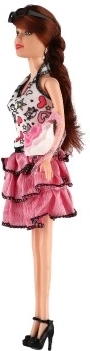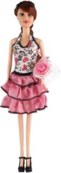 Roze gelaagde rokken, bloementops en kleine accessoires maken van de pop een mode-icoon voor elke kinderverzameling.