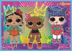 Ontdek het plezier van puzzelen met de kinderset 4-in-1 L.O.L. Surprise. Vier losse afbeeldingen van 285 × 205 mm met een verschillend aantal stukjes (35, 48, 54 en 70) zullen zowel jongere als oudere fans blij maken. Gemaakt in Polen van ecologische materialen, geschikt voor kinderen vanaf 4 jaar.