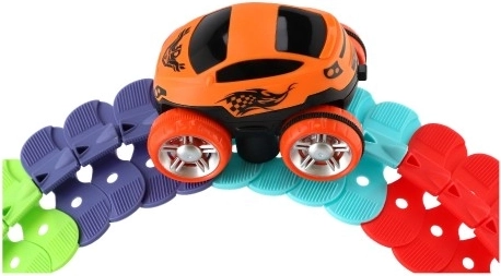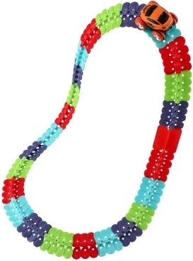 Ontdek deze unieke racebaan, waarmee kinderen elk spel in een onvergetelijke ervaring kunnen veranderen. Dankzij de flexibele onderdelen kan de baan snel en eenvoudig in verschillende vormen en kleurencombinaties worden gemonteerd. Het autootje bij de set geeft licht en beweegt over de baan, wat uren speelplezier oplevert.