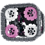 Je bedient elke rupsband apart, waardoor de robot op de plaats kan draaien, nauwkeurig kan sturen en speelse trucs kan doen.