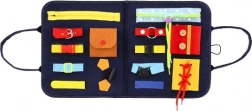 Deze educatieve motorische plaat biedt een gevarieerd scala aan activiteiten waarmee kinderen op speelse wijze hun vingers en oog-handcoördinatie trainen. De verschillende soorten sluitingen – van ritsen en knopen tot gespen – bootsen alledaagse aankleedsituaties na en bevorderen zelfstandigheid.