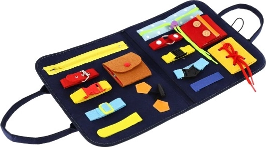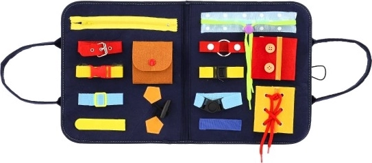 Praktische en leuke motorische viltplaat met diverse sluitingen biedt kinderen uren ontdekkingsplezier. Dankzij activiteiten zoals ritsen, knopen, gespen en klittenband ontwikkelen ze fijne motoriek, geduld en zelfstandigheid bij het aankleden. Ideaal voor onderweg en thuis, gemakkelijk mee te nemen en duurzaam.