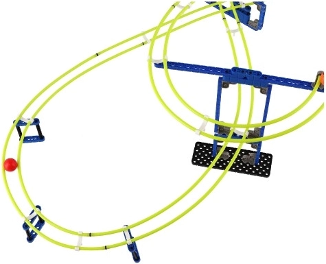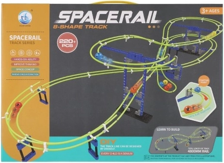 De knikkerbaan Spacerail is een ideale keuze voor kleine bouwers. Stevige kunststof bases en steunen houden de hele constructie stabiel, terwijl flexibele onderdelen gevarieerde combinaties van loops, bochten en afdalingen mogelijk maken. Kinderen kunnen bouwen volgens de handleiding of volledig op basis van hun eigen fantasie.