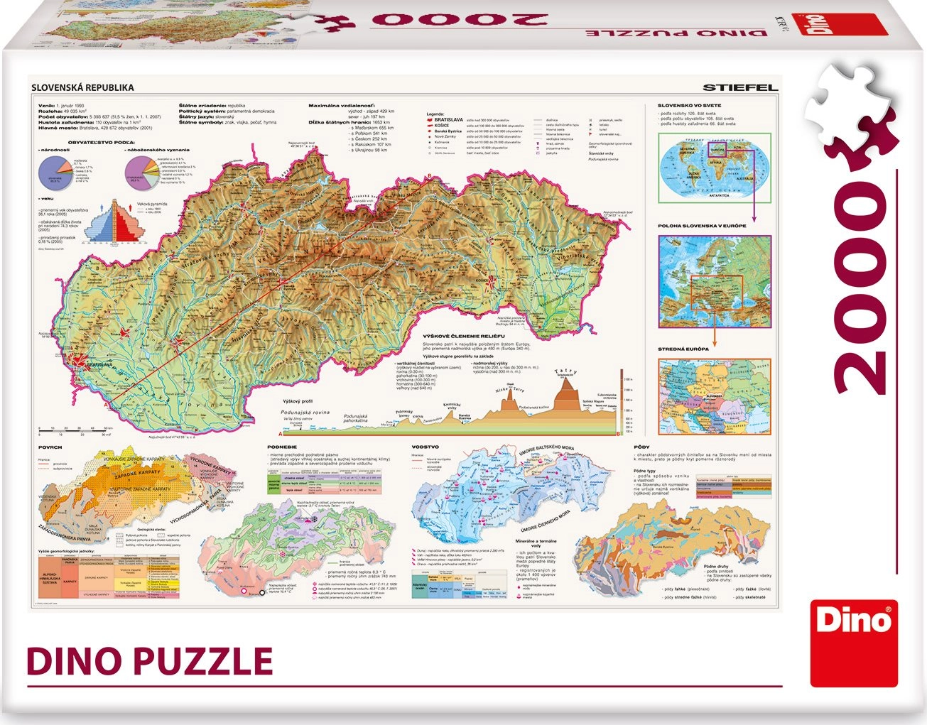 Verbind Slowakije opnieuw met onze geweldige puzzelkaart van 2000 stukjes. Een nuttig hulpmiddel voor alle leeftijdsgroepen met nadruk op geomorfologische en wereldwijde contexten.