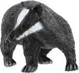 Dit figuurtje beeldt de Europese das (Meles meles) af met kenmerkende witte strepen op de kop en een donker lichaam. Dankzij de realistische details helpt het kinderen de soort gemakkelijk te herkennen en hun kennis over bosdieren uit te breiden, zowel in de les als tijdens het spel.