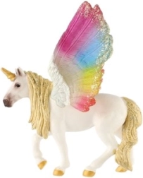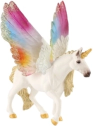 Deze gedetailleerd uitgewerkte eenhoorn met prachtige, regenboogkleurige vleugels en verfijnde gouden accenten brengt een wereld van fantasie tot leven in het spel. Het witte figuurtje van duurzaam plastic is licht, ligt prettig in de hand en is klaar voor dagelijkse avonturen in het sprookjesrijk.