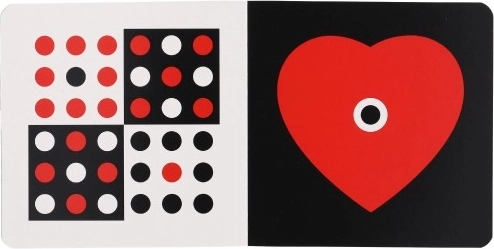Pasgeborenen zien alleen op korte afstand en onderscheiden aanvankelijk alleen zwart en wit. Dit boekje is ontworpen om hun aandacht te trekken en hun ontwikkeling te bevorderen. Het bevat afbeeldingen met hoog contrast en introduceert geleidelijk rood, geel, blauw en groen, wat helpt hun vermogen om details te onderscheiden te verbeteren.