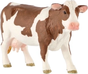 Voeg dit realistische model van een kunststof koe toe aan je verzameling of educatieve omgeving. Details zoals natuurlijke kleurschakeringen en kenmerkende eigenschappen van het Tsjechisch bont ras bieden onschatbare visuele prikkels voor alle leeftijdscategorieën.