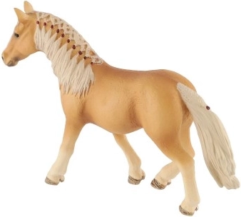 Het paardmodel is gemaakt met precieze details, waaronder een gevlochten manen en een volle staart, die bijdragen aan de authenticiteit.