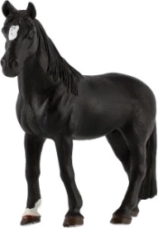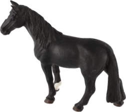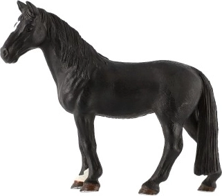 Dit zwarte paard is afgebeeld met veel oog voor detail, inclusief manen en staart, wat bijdraagt aan het realistische uiterlijk.
