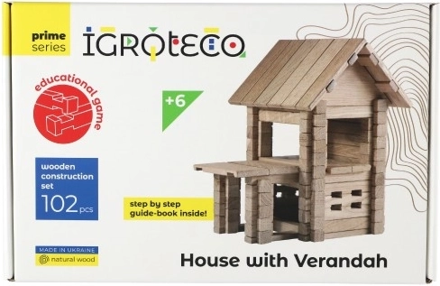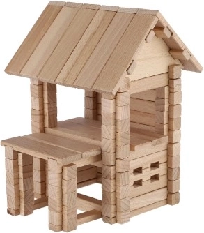 Bouwset houten huis 102 delen in doos 28x18x7 cm