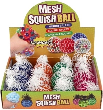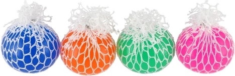 Het anti-stress balletje met net is een ideale hulp voor kinderen en volwassenen die spanning willen loslaten, de concentratie willen verbeteren of de vingers willen soepel houden. Bij het knijpen vormen zich door de mazen van het net bubbels die tactiele en visuele stimulatie bieden en ontspanning ondersteunen.