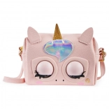Ontdek de magie met de interactieve tas Eenhoorn Purse Pets! Deze tas heeft knipperende ogen en reageert op aanraking, waarmee tot 25 verschillende geluiden en reacties worden geactiveerd.