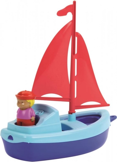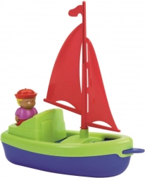 De stabiele kunststof boot met zeil drijft echt, dus perfect voor in bad en in het zwembad. Kinderen beleven realistisch speelplezier als kapitein.
