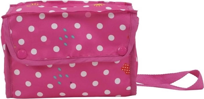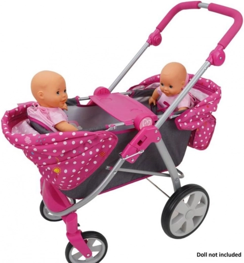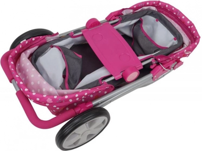 Mooie poppenwagen met een charmant stippenpatroon en een verstelbare handgreep voor het comfort van je kinderen. Ideaal voor kleine dames vanaf 3 jaar voor poppen tot 53 cm.
