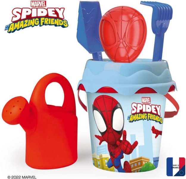 Ontdek het speelplezier in het zand met de kwalitatieve SPIDEY strandset. De emmer met accessoires is ideaal voor op vakantie, in de zandbak en op het strand. Dankzij de IML-technologie zit het beeld vast in het materiaal, waardoor het niet loslaat en niet vervaagt, zelfs niet bij veelvuldig gebruik.