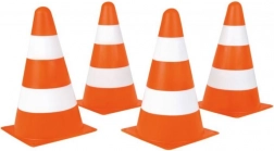 Vier oranje kegels zijn ideaal voor spelletjes met een bal, autootjes of als hulp bij reparaties. Creëer ruimte voor sportactiviteiten of grens een veiligheidszone af.