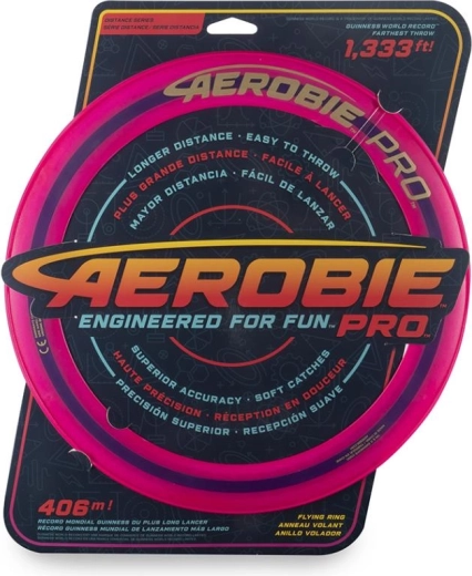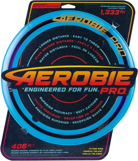 In discgames kan niets tippen aan de prestaties van de Aerobie Pro Ring. Deze ring werd gebruikt bij het verbreken van het wereldrecord werpen: hij vloog een ongelooflijke 406 meter. Dankzij het slanke ontwerp en een diameter van 33 cm kun je op zulke afstanden werpen. Bovendien heeft hij zachte randen voor comfortabel vangen. De open middenring maakt het mogelijk dat elke speler zijn eigen werp- en vangstijl heeft. Verkrijgbaar in verschillende kleuren, afzonderlijk verkocht. Let op: deze ring drijft niet op water. Leeftijd 12+.