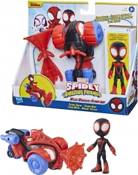 Geniet van avonturen met het thematische voertuig van Spider-Man! De speelset bevat een actiefiguur van 10 cm en zijn voertuig met afneembare helm.