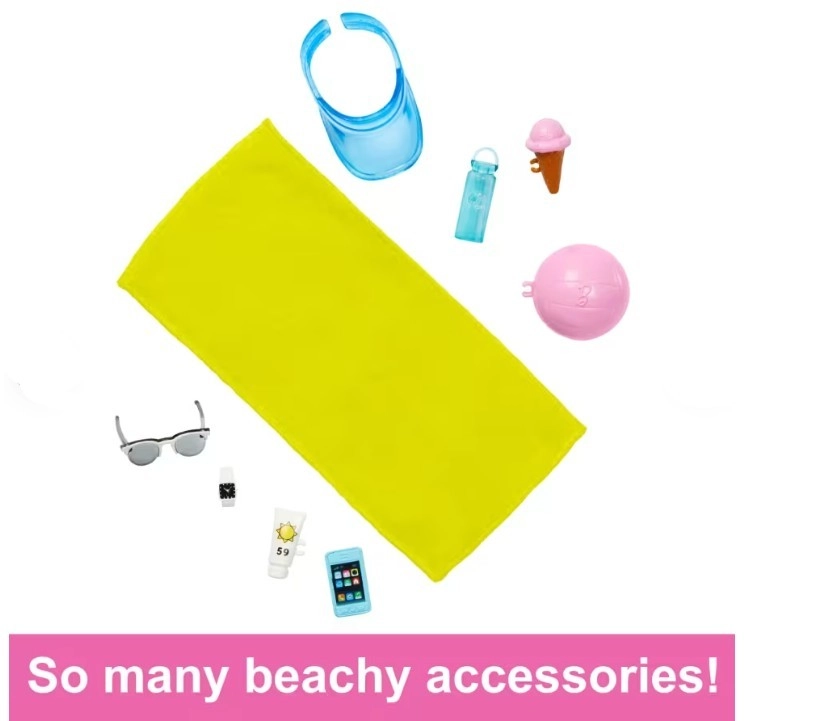 Ken is de perfecte metgezel voor strandavonturen – van relaxen op de handdoek tot spelen met de strandbal. Accessoires zoals een visor, zonnebril of zonnebrandcrème stimuleren fantasierijk spel en de ontwikkeling van sociale vaardigheden.