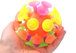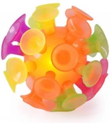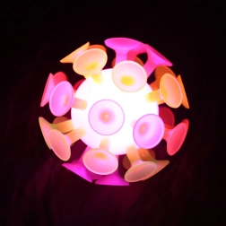 Leuke bal voor kinderen en volwassenen met zuignappen die hechten op een glad oppervlak. Bij impact gaat hij automatisch branden, wat zorgt voor aantrekkelijke lichteffecten en nog meer plezier bij het spelen, zowel binnen als buiten.