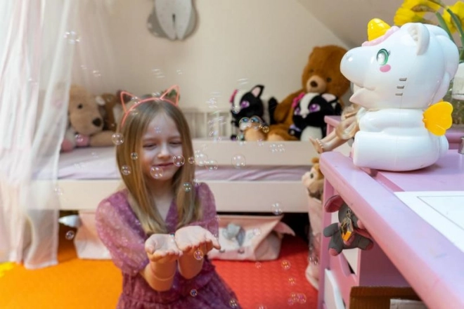 De eenhoorn bubbelmachine is de ideale metgezel voor alle kinderen en volwassenen die van bellen houden. Hiermee creëer je in een oogwenk vrolijke en magische momenten.