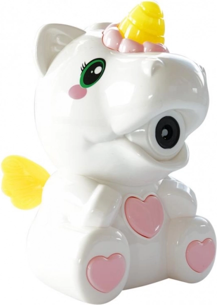 De eenhoorn-vormige bubbelmachine bezorgt je overal een wolk van bellen. Werkt op batterijen en is eenvoudig te gebruiken.