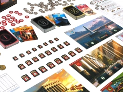 - 7 wonderborden, 148 kaarten, 48 conflictfiches, 78 munten, scoreblok, 3 referentieoverzichten met effecten, kaartlijst met kettingen, spelregels