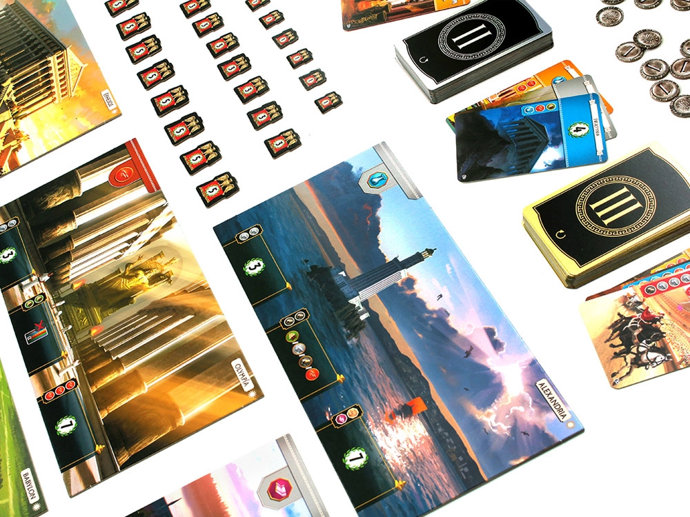 Elke speler leidt een eigen stad met een uniek Wereldwonder in meerdere etappes. Het voltooien ervan levert sterke bonussen, speciale effecten en extra punten op. Dankzij de duidelijke iconografie, overzichtelijke kaarten en stevige speelborden leer je het spel snel en speelt het vlot.